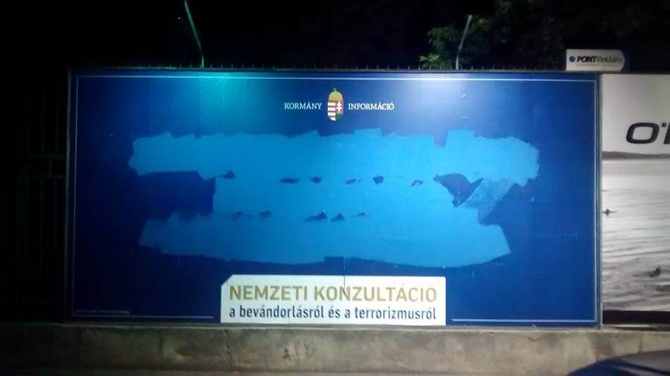 Nem bírta sokáig az uszító / értelmetlen bevándorlóplakát a Dagálynál[!!444!!!] Délután kirakták, estére kijavították.